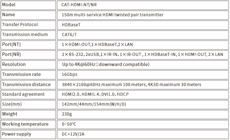 >Support HDBaseT 2.0 standard, using CAT6/7 network cable transmission distance up to 150 meters;