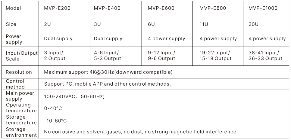 The 4K×2K video wall controller series includes models E200, E400, E600, E800, and E1000, each of which can be configured with various optional scales. The maximum output scale can support splicing displays with up to 144 sending cards, while also supporting multiple groups of large screen displays with different resolutions. Each group’s resolution can be customized according to actual needs.
