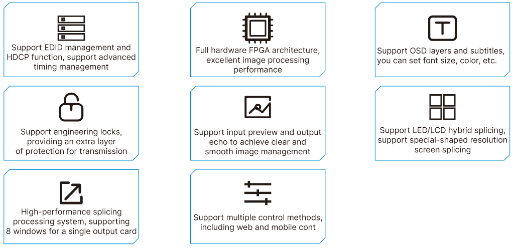 - Support Genlock video source synchronization function, cascade synchronization between devices, - Achieve frame synchronization between screens;