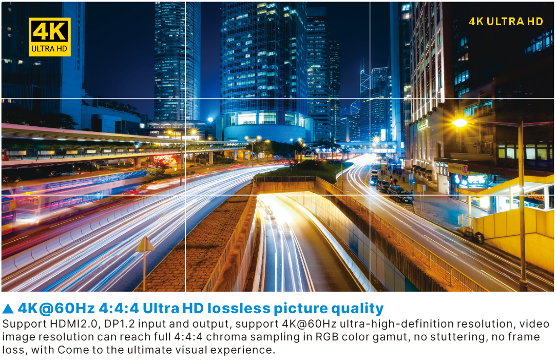 - Support 4K@60Hz 4:4:4 input and output signal source;