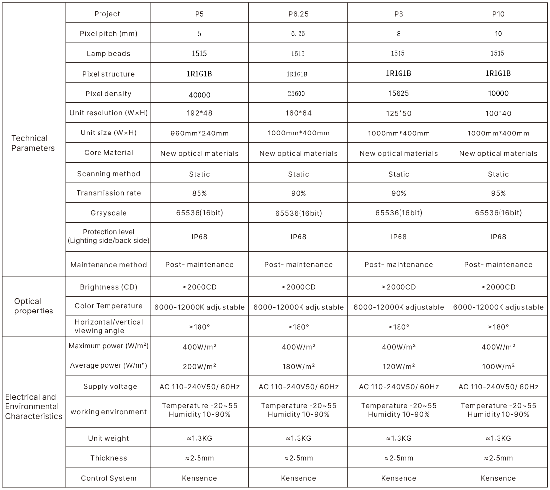 As people's demand for high-quality visual experience grows, Kensence Starlight Flexible Window( P5/P6.25/P8/P10 Transparent LED Screen), as a new display technology, has great market potential. Especially in the creative advertising industry and indoor and outdoor exhibition fields, Kensence Star Flash flexible windows( P5/P6.25/P8/P10 Transparent LED Screen) can attract more attention and increase the exposure of products and brands.